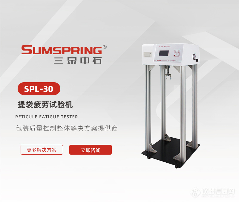 实验机:需运用契合规范要求的提袋疲惫实验机,如三泉中石的SPL-50 食物塑料购物袋提袋疲惫实验机,振幅30 mm±2 mm,频率2 Hz~3 Hz。